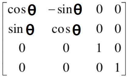 Z축을 기준으로 회전하는 행렬은 아래와 같습니다.