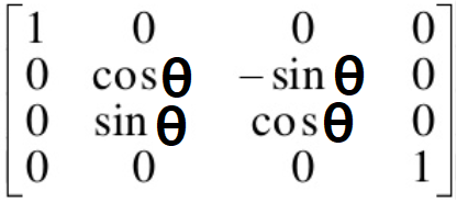 X축을 기준으로 회전하는 행렬은 아래와 같습니다.