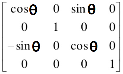 Y축을 기준으로 회전하는 행렬은 아래와 같습니다.